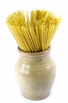 Here are two from-scratch pasta dough recipes that I use all the time- one vegan, one vegetarian, both by wonderful chefs. It is easy to experiment with pasta flavors – incorporate flavors that mesh well with the sauce you’re going to use (like garlic, spinach, or basil for a pesto sauce, or red chile for a marinara). Try chopped fresh herbs, like basil and oregano, or powdered spices like garlic and red chile powder. You’ll have to experiment according to your tastes, but I’ve found that if I’m using fresh herbs, I need a few tablespoons at least, whereas if I’m using powdered spices, I’ll use one or two teaspoons or so of all of them combined. It also depends on how fresh your powdered spices are. Fresh spices are obviously stronger, and so you’ll need to use less. Knead your herbs into the dough or, if using spices, premix into the flour before creating your egg well.  Keep in mind that fresh pasta, while tasting better, will also fall apart more easily if boiled too long. Remember that pasta continues to cook unless you rinse well with cold water after straining.